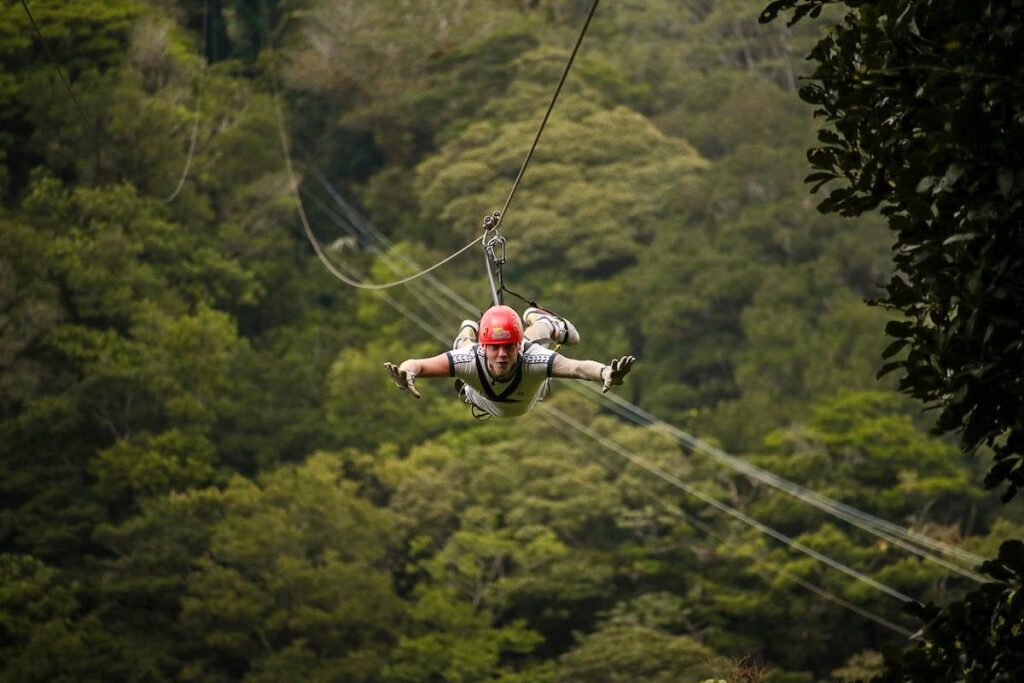 Soar high above the rainforest canopy and experience Costa Rica’s lush jungle from a breathtaking new perspective. This thrilling zip line adventure takes you across a series of platforms and cables suspended above the forest floor, revealing spectacular views of the surrounding jungle, valleys, and vibrant wildlife.